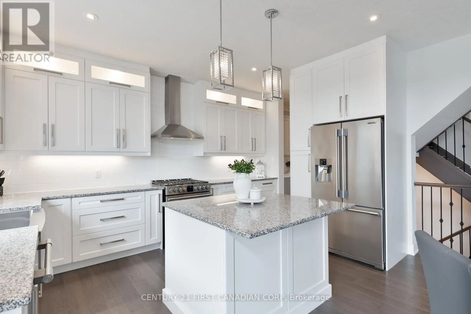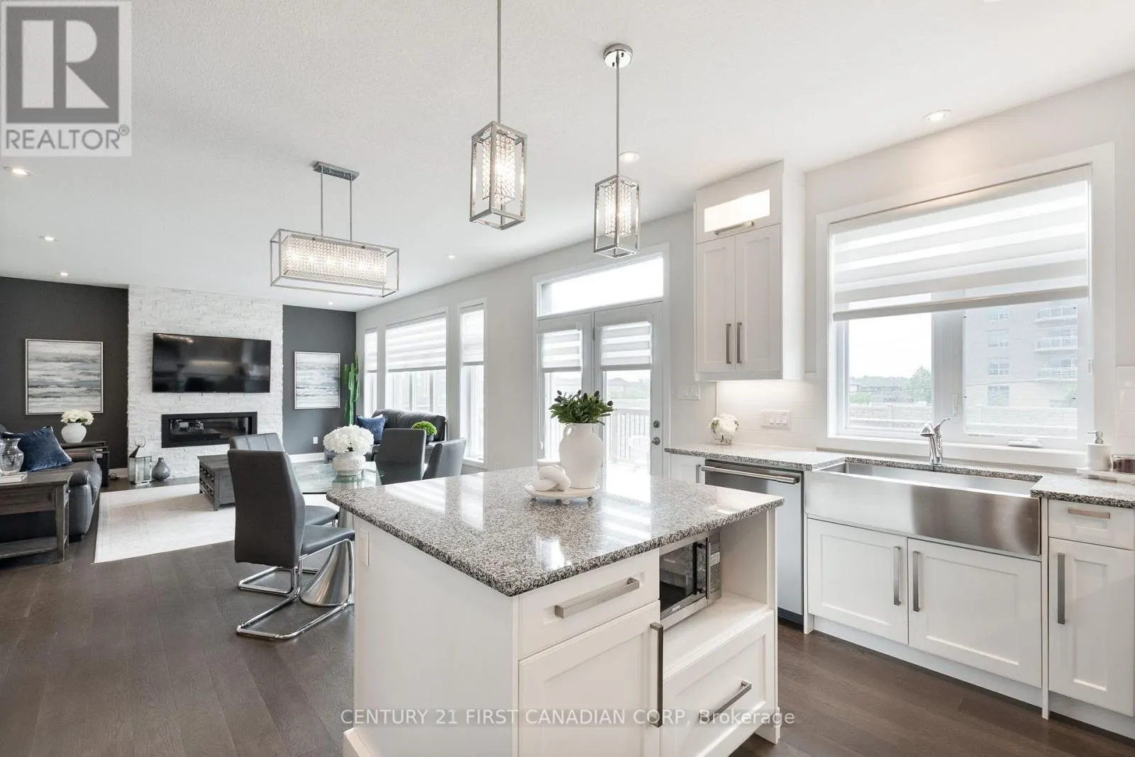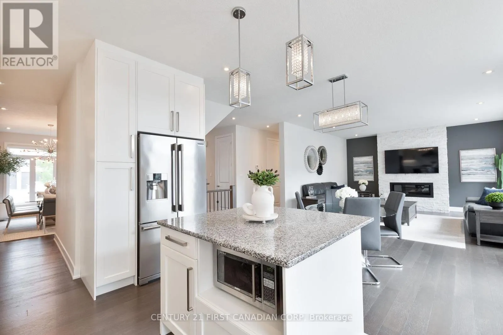 Stunning 2-Story Home in a Desirable Westmount Neighborhood. Welcome to this exquisite brick and stone residence, perfectly situated in a vibrant community with excellent amenities and top-rated schools. This beautifully maintained home offers a spacious and elegant living environment, ideal for fa...mily life and entertaining. As you step inside, you'll be greeted by a dramatic floor-to-ceiling opening that creates an impressive entrance. The main floor features soaring 9-foot ceilings, complemented by recessed pot lights throughout, enhancing the bright and inviting atmosphere. The stunning engineered hardwood floors add warmth and sophistication. The gourmet kitchen boasts granite countertops and a convenient butlers pantry, perfect for preparing meals and hosting gatherings. The open-concept dining area seamlessly connects to the living space, which features a cozy gas fireplace and a striking stone fireplace mantel ideal for relaxing evenings. Upstairs, you'll find four generously sized bedrooms, including a luxurious master suite with a spa-like ensuite. The master bath offers a glass shower and a soaker tub, creating a perfect retreat after a busy day. Additional highlights include a spacious walk-out basement, ideal for an entertainment or additional living space, and a large deck perfect for outdoor entertaining. This home combines style, comfort, and functionality in a prime location. Close to parks, the Bostwick YMCA, and all essential amenities. Don't miss the opportunity to make this beautiful house your new home. Schedule your private tour today! (id:10452)